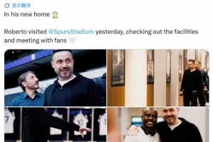 德澤爾比出任熱刺主帥,他在昨天參觀了熱刺球場,并與球迷們見面,俱樂部官方社媒曬出照片。