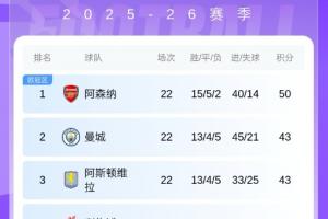 但因本輪排名第2的曼城和排名第2的維拉均吞敗仗,曼城0-2輸?shù)袈械卤龋S拉主場0-1不敵埃弗頓,阿森納仍成功擴(kuò)大分差。從上一輪的6分領(lǐng)先擴(kuò)大至7分領(lǐng)先!