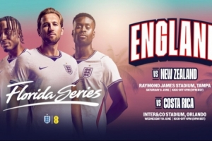 英格蘭6月友誼賽場(chǎng)地:在坦帕對(duì)陣新西蘭,在奧蘭多vs哥斯達(dá)黎加