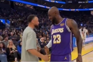 致敬老對(duì)手!庫(kù)里今日入場(chǎng)時(shí)穿著詹姆斯經(jīng)典戰(zhàn)靴LeBron 10