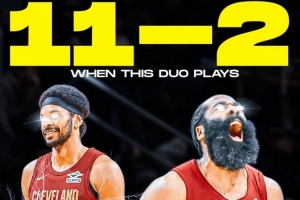兩人共同出戰(zhàn)的比賽,騎士取得了11勝2負(fù)的戰(zhàn)績(jī)。