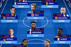 中場:庫蒂尼奧(250萬)、阿里(100萬)、巴卡約科(50萬)、德烏洛費(fèi)烏(20萬)