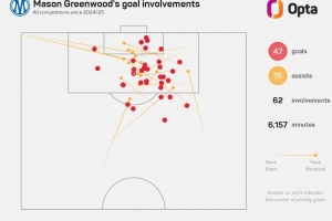格林伍德加盟馬賽以來出戰(zhàn)76場比賽,參與62粒進球。