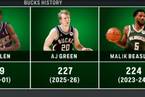 至此他本賽季命中227記三分,超越馬利克·比斯利升至隊(duì)史第二,僅次于雷·阿倫的229記。