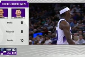 爵士主場迎戰(zhàn)灰熊,截至發(fā)稿貝茲·姆本和康查爾同時達成三雙。