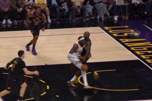 GIF-詹姆斯切掉馬威的球被吹犯規(guī),湖人挑戰(zhàn)