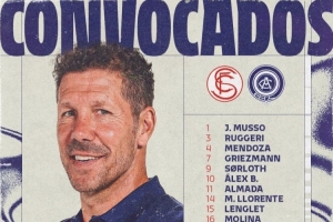 前鋒:7-格列茲曼、9-瑟爾洛特、10-巴埃納、11-阿爾馬達(dá)、19-阿爾瓦雷斯、20-朱利亞諾·西蒙尼、22-盧克曼