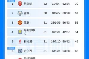 體育資訊04月11日訊 英超第32輪結(jié)束一場(chǎng)較量,阿森納主場(chǎng)1-2負(fù)于伯恩茅斯,多賽兩場(chǎng)對(duì)曼城的領(lǐng)先優(yōu)勢(shì)仍為9分,完整英超積分榜如下。