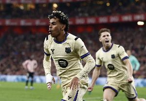 數(shù)據(jù)統(tǒng)計(jì)顯示,本賽季西甲聯(lián)賽亞馬爾進(jìn)球和助攻數(shù)均已上雙,是五大聯(lián)賽第三位做到這一點(diǎn)的球員。