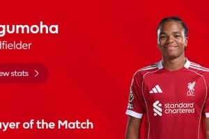 17歲225天!英超官方:恩古莫哈當(dāng)選利物浦vs富勒姆的全場(chǎng)MVP