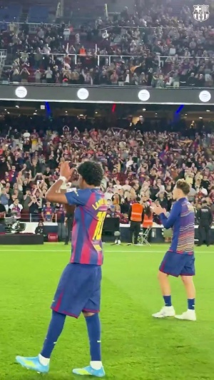 體育資訊04月12日訊 加泰德比,巴薩4-1戰(zhàn)勝西班牙人。巴薩球員賽后謝場,全場球迷6萬多球迷高喊“是的,我們可以”,鼓勵球隊逆轉(zhuǎn)馬競。