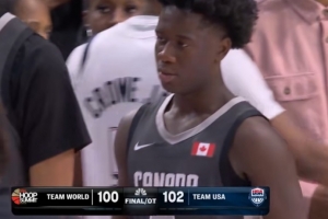 本場比賽,世界隊球員、加拿大未來之星薩德勒出場43分鐘18投10中,三分5中3、罰球10中6空砍全場最高29分外加4籃板7助攻2搶斷,也有最多的11次失誤,正負(fù)值-4。