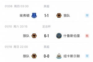 近4輪英超,狼隊先后戰(zhàn)平曼聯(lián)、埃弗頓和紐卡三支勁敵,并3-0大勝保級對手西漢姆聯(lián)。