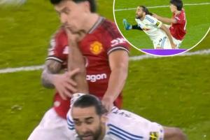 體育資訊04月14日訊 英超第32輪,曼聯(lián)對陣?yán)澛?lián)。55分鐘, VAR介入,主裁親自觀看回放,判罰利桑德羅拉拽勒溫頭發(fā),將其紅牌罰下。