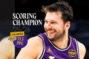 體育資訊4月14日訊 今日,湖人官推曬出一張海報祝賀東契奇以場均33.5分成為賽季得分王。