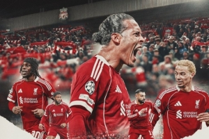 利物浦官方社媒發(fā)布了為此役制作的海報(bào),范戴克、?;倏恕⑺_拉赫、弗林蓬、喬·戈麥斯出鏡。