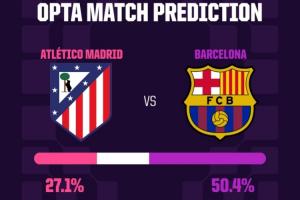 另一場(chǎng)1/4決賽,巴薩90分鐘內(nèi)客場(chǎng)取勝的概率為50.4%,而馬競(jìng)勝率只有27.1%。但就晉級(jí)而言,馬競(jìng)被視為絕對(duì)熱門,晉級(jí)概率達(dá)到79.6%,巴薩翻盤的概率僅為20.4%。