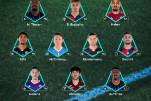 體育資訊4月14日訊 意甲第32輪已經(jīng)結(jié)束了全部的爭奪,聯(lián)賽官方評選出了本輪最佳陣,馬庫斯·圖拉姆、鄧弗里斯領(lǐng)銜,馬倫、麥克托米奈在列。