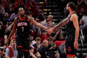 火箭(25-15):史密斯32分8板、申京21分8板4助5斷、阿門20分8板6助、杜蘭特18分6板8助、謝潑德11分3板1助、芬尼-史密斯8分3板、亞當(dāng)斯5分10板2助、奧科吉4分1板1助