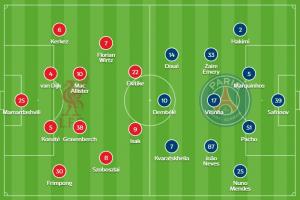 官方陣型4222,伊薩克和埃基蒂克雙前鋒,維爾茨左邊前衛(wèi),索博右邊前衛(wèi),麥卡利斯特、赫拉芬貝赫雙中場。
