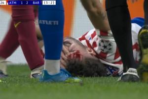 體育資訊04月15日訊 歐冠1/4決賽次回合,馬競(jìng)vs巴薩,第69分鐘,魯杰里被加維肘擊,倒地滿臉是血,加維染黃!