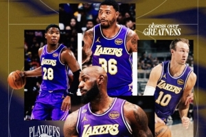 值得一提的是,在這張湖人官方活動(dòng)宣傳海報(bào)中亮相的四位球員為詹姆斯、斯瑪特、八村塁、肯納德,并無(wú)兩位傷員東契奇和里夫斯的身影。