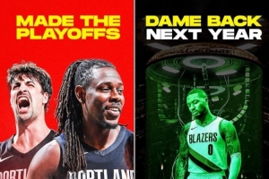 開拓者附加賽險勝太陽,西部第七晉級季后賽。美媒曬圖發(fā)文寫道: