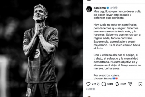 體育資訊4月15日訊 歐冠1/4決賽次回合,巴薩客場2比1擊敗馬競,最終以總比分2-3出局。賽后,奧爾莫社媒發(fā)文誓言帶巴薩重回應(yīng)有位置。