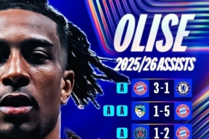 而數(shù)據(jù)統(tǒng)計顯示,奧利塞本賽季為拜仁共計出戰(zhàn)10場歐冠共計送出8次助攻,有7場都能送出助攻,也包括了雙方首回合的伯納烏之戰(zhàn)。