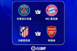 半決賽對(duì)陣隨之敲定,巴黎將先主后客迎戰(zhàn)拜仁,馬競(jìng)則先主后客對(duì)決阿森納。兩回合角逐將于4月29日-30日及5月6日-7日凌晨展開(kāi)。