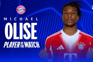 鎖定勝局,歐冠官方:奧利塞當(dāng)選拜仁4-3皇馬全場(chǎng)最佳球員
