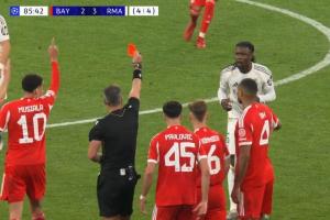體育資訊04月16日訊 歐冠1/4決賽次回合,十人皇馬3-4總比分4-6遭拜仁淘汰,本場(chǎng)比賽堪稱精彩,兩隊(duì)上半場(chǎng)合計(jì)轟入5粒進(jìn)球,并且皇馬半場(chǎng)成功將首回合的劣勢(shì)扳平。但比賽最后時(shí)刻,卡馬文加被紅牌罰下無(wú)疑讓整場(chǎng)比賽風(fēng)云突變。