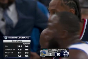 倫納德?lián)糁胁ń苣匪够娌勘淮颠M(jìn)攻犯規(guī) 裁判回看后沒有升級