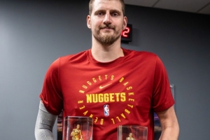 掘金官方配文寫道:“大王的雙王,聯(lián)盟籃板王X聯(lián)盟助攻王。歷史獨(dú)一份,MVP?!?/p>