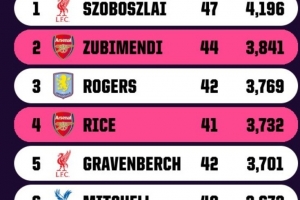 體育資訊4月17日訊 OPTA對(duì)英超球員本賽季各項(xiàng)賽事出場(chǎng)時(shí)間進(jìn)行了統(tǒng)計(jì),利物浦的索博斯洛伊以4196分鐘居首,阿森納兩將蘇維門(mén)迪和賴斯位居第2和第4位,兩人出場(chǎng)時(shí)間分別為3841分鐘和3732分鐘。