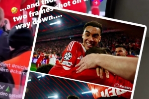 從其他角度拍攝的照片顯示,攝影師們被夾在慶祝晉級的球員、球迷和廣告牌之間。拜仁慕尼黑迅速聯(lián)系了受傷的攝影師和球迷,球迷們也對這起事件表示歉意。