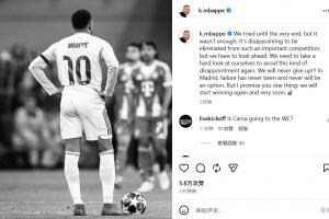體育資訊04月17日訊 皇馬在歐冠1/4決賽被拜仁淘汰,姆巴佩賽后發(fā)表社媒。