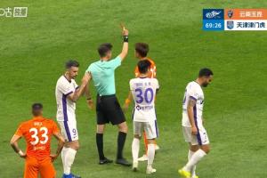 體育資訊04月17日訊 中超第6輪,云南玉昆vs天津津門虎,比賽第70分鐘,張宸梁身后拉倒謝蒂內,兩黃變一紅被罰下,玉昆0-2+少一人作戰(zhàn)!VAR介入檢查是否構成直紅,最后維持黃牌判罰。