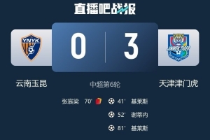 體育資訊4月17日訊 中超第6輪,天津津門虎客場(chǎng)3-0擊敗云南玉昆,收獲賽季首勝。