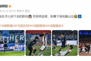 體育資訊4月17日訊 中超聯(lián)賽第6輪,成都蓉城客場(chǎng)1-0擊敗武漢三鎮(zhèn),繼續(xù)領(lǐng)跑積分榜。