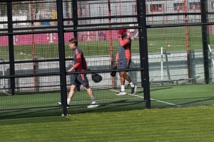 忙里偷閑!孔帕尼和弗羅因德今日訓(xùn)練后組隊(duì)進(jìn)行板式網(wǎng)球雙打比賽