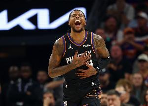 格林:“我認(rèn)為是的。我們今晚就會(huì)知道。從去年的經(jīng)歷到今年,你學(xué)到了很多,特別是在新的環(huán)境中,身邊有布克這樣的人。我覺得這會(huì)很好?!?/p>
