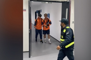 在中超“青島德比”結(jié)束后,最后時(shí)刻受傷的鄺兆鐳步履蹣跚。