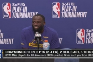 體育資訊4月18日訊 NBA附加賽,勇士96-111不敵太陽。賽季結(jié)束。賽后德雷蒙德·格林接受了媒體采訪,以下為采訪全文。