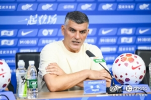 4月17日,成都蓉城主教練約翰·阿洛伊西出席賽后新聞發(fā)布會。