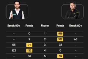 斯諾克世錦賽第1輪階段1:肖國棟5-4領(lǐng)先周躍龍