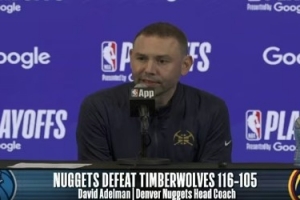 體育資訊4月19日訊 NBA季后賽首輪,掘金主場116比105擊敗森林狼,大比分1比0領先。賽后掘金主帥阿德爾曼接受了媒體采訪,以下為采訪全文。