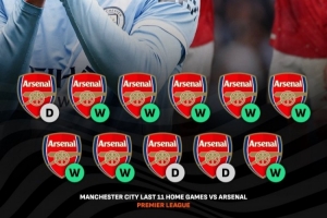 據(jù)livescore數(shù)據(jù)統(tǒng)計(jì),曼城主場(chǎng)對(duì)陣阿森納已連續(xù)11場(chǎng)8勝3平保持不敗,槍手始終未能在伊蒂哈德球場(chǎng)取勝。