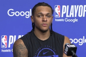 班凱羅:過去發(fā)生的事情,你沒有任何辦法去改變。說到底,我們現(xiàn)在站在了季后賽的舞臺上,我們有機會去實現(xiàn)我們從去年十月起就設(shè)定的目標。所以就像我說的,你不能太糾結(jié)于常規(guī)賽發(fā)生的事情和那些挫折,你必須把大家團結(jié)起來,意識到我們現(xiàn)在全員健康,我們感覺整個團隊非常有默契。我們在對陣黃蜂的比賽中找到了防守、能量和溝通的感覺,我們知道只要能延續(xù)這種表現(xiàn),無論對手是誰,我們每晚都有機會贏球。所以,這絕對是一個全新的賽季,全新的能量。