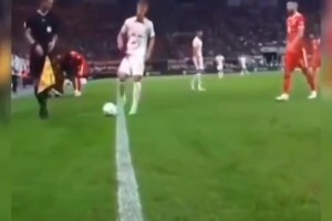法國拜合拉木奧利塞助攻凱恩破門后,第一時間跑去球門撿球